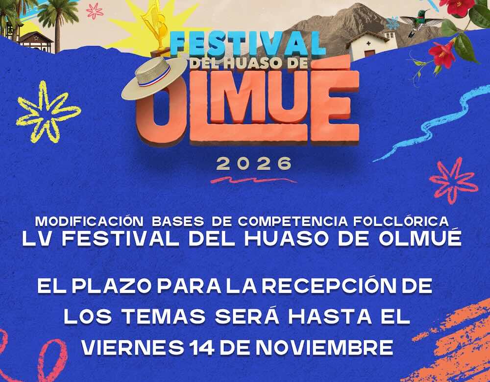 La Comisión Organizadora del LV Festival del Huaso de Olmué informó una actualización en las bases de la competencia folclórica del certamen 2026, ajustando las fechas oficiales del proceso de postulación y selección.